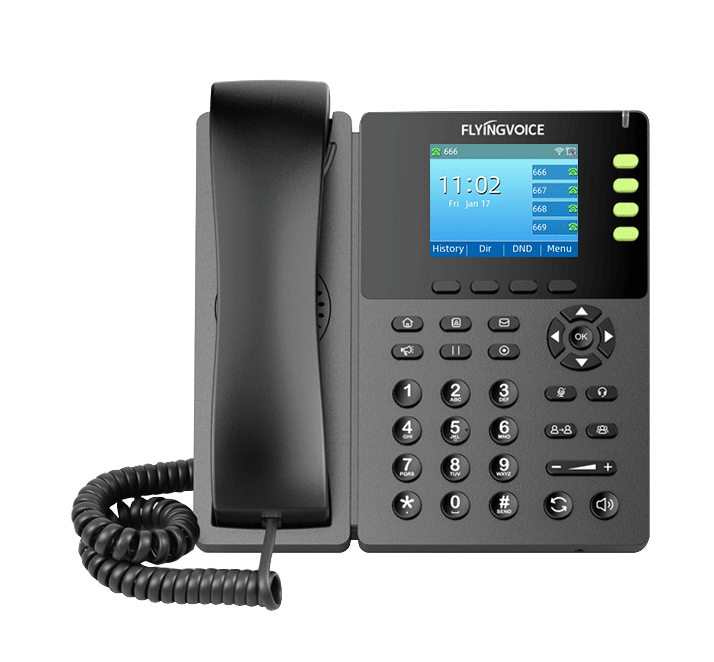 O FIP13G é um telefone IP com 4 linhas SIP, ideal para uso corporativo. Conta com uma tela colorida de 2,8”, duas portas Ethernet Gigabit, porta USB 2.0, conector RJ9, PoE integrado e Wi-Fi 2,4GHz — oferecendo praticidade, desempenho e conectividade para o dia a dia no escritório.