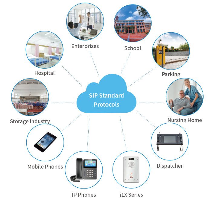 Baseado nos protocolos SIP, pode acessar facilmente os principais IPPBX do mercado e pode ser implantado para uso tanto em LAN quanto em WAN.Interfone de Áudio/Vídeo